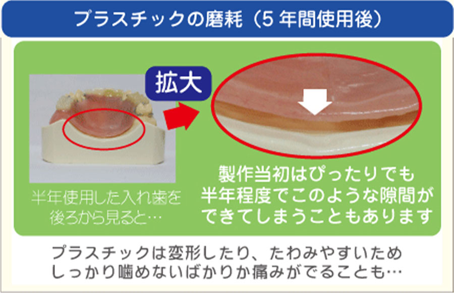 健康保険が利用できます。強度を保つため、厚く作る必要があります。変形しやすく、 割れてしまうこともあります。