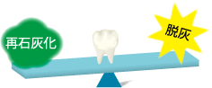「むし歯」はむし歯菌によって歯が溶かされる病気。実は、歯は食事の度にむし歯菌によって溶かされています(脱灰)。しかし、多少溶けたとしても、唾液の作用により再び元に戻ります(再石灰化)。